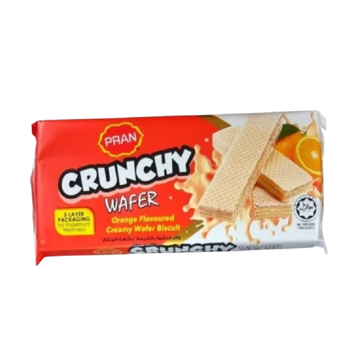 Product specifications of Pran crunchy wafer Orange 100g
